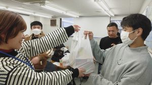 - お知らせ2025年12月03日 本日2025年12日3日、学生のみなさんに食品の配布を行いました。