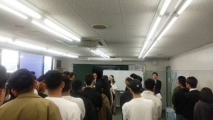 ソワソワしながら登校してきた学生たちも、始業式が始まるとしっかりと起立し、