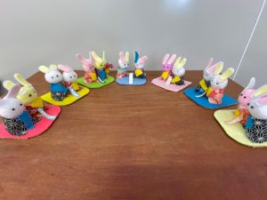 それぞれ、ひな壇を作ったり、飾りを作ったり、うさぎのひな人形を作りました。